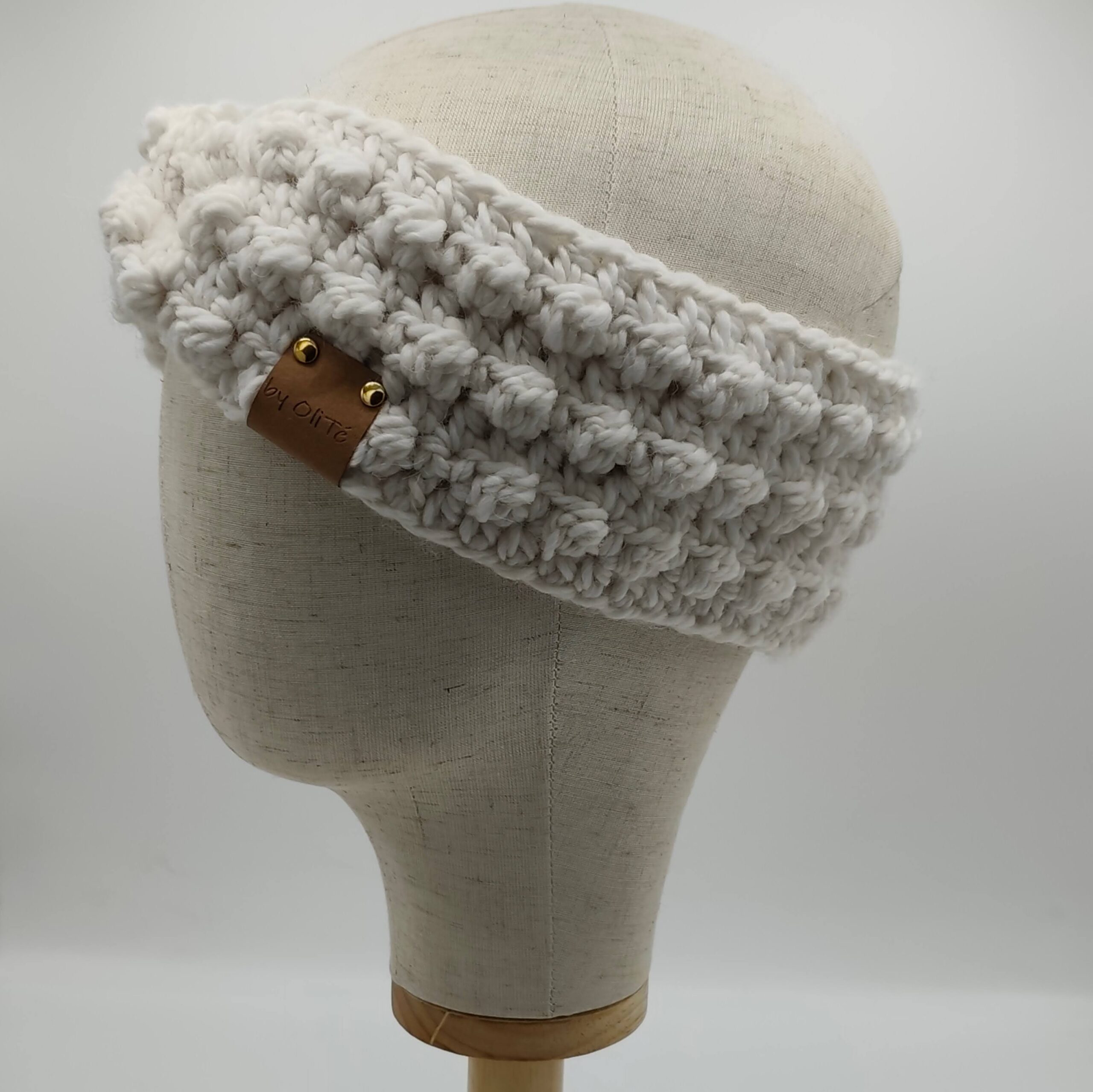 Bílá dámská čelenka s nopky a twist uzlem je stylovou a elegantní volbou pro ženy, které nesnášejí nošení čepic. Čelenka vás zahřeje a navíc dodá vašemu outfitu ten správný šmrnc. Je vyrobena z kvalitní vlněné příze. Výsledná čelenka je lehká, příjemná na dotek a díky alpace velmi hřejivá. Vzorek spolu s twist uzlem je nápaditý a vy budete nepřehlédnutelná.