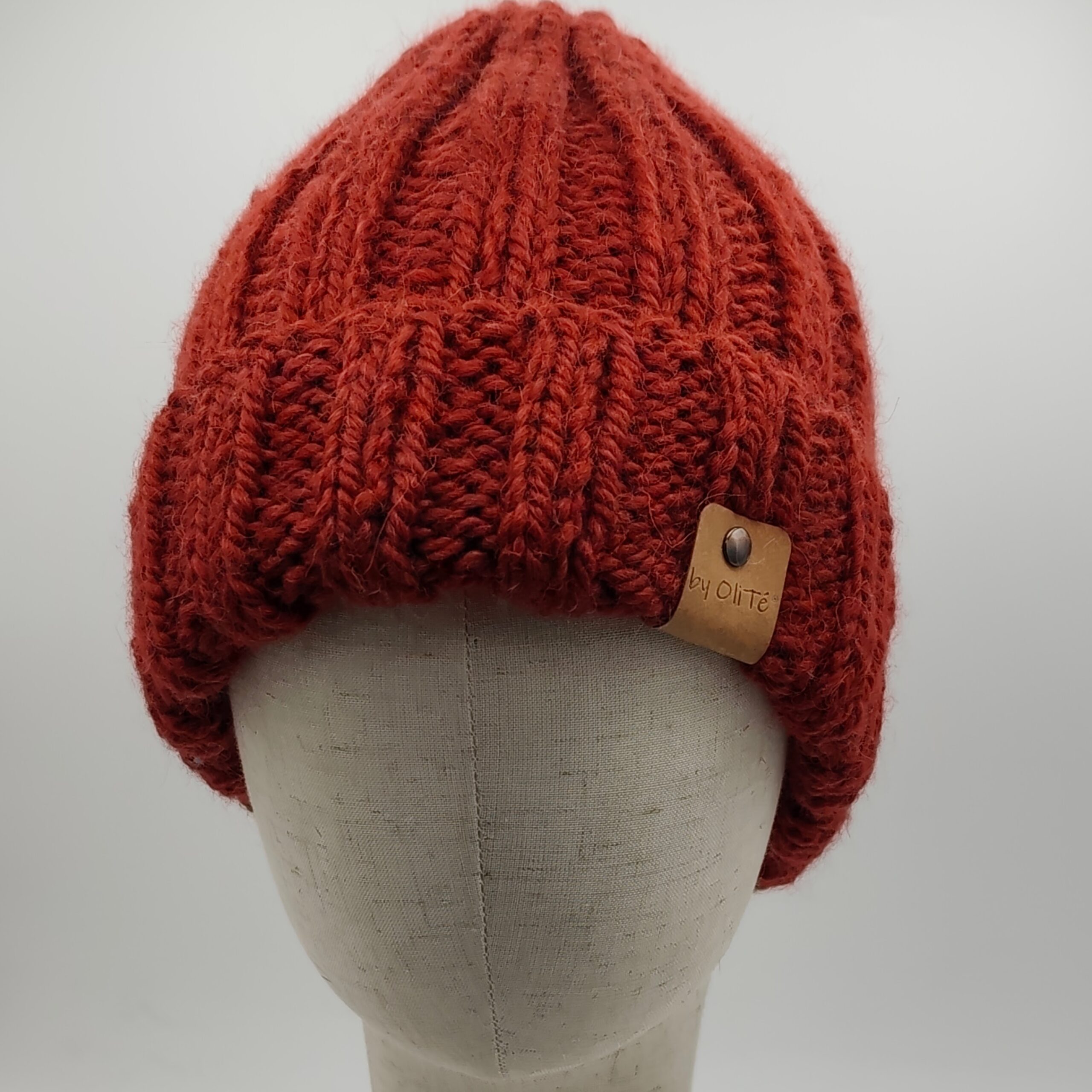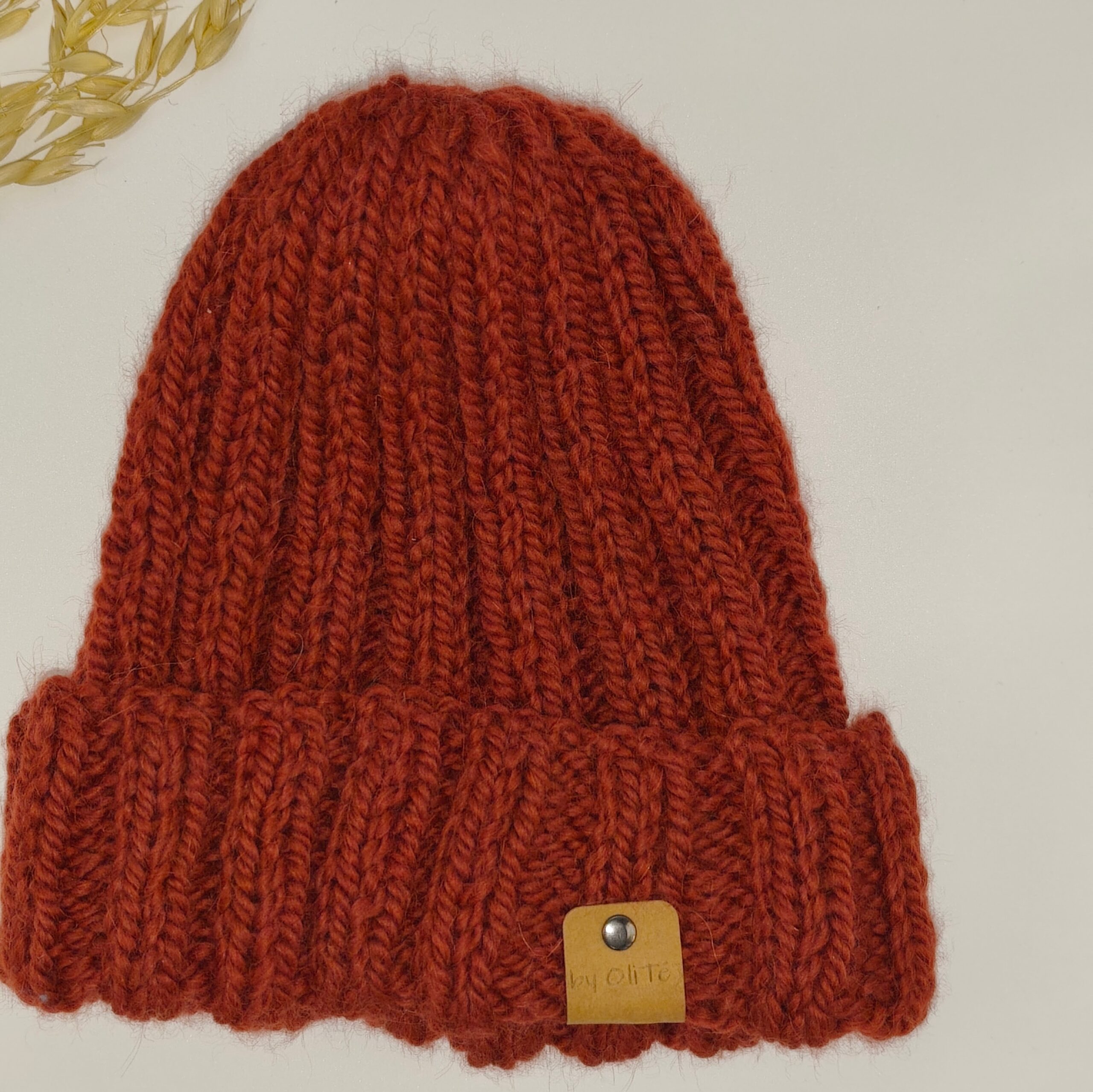 Dámská chunky čepice měděná s ohrnutým lemem z kvalitní peruánské vlny a alpaky. Vlna jí dodává tvarovou stálost, zatímco alpaka hedvábný povrch. Tuhle huňatou čepici můžete nosit kdokoli komu padne, s čímkoli v podzimních tónech a kamkoli vás jen napadne.