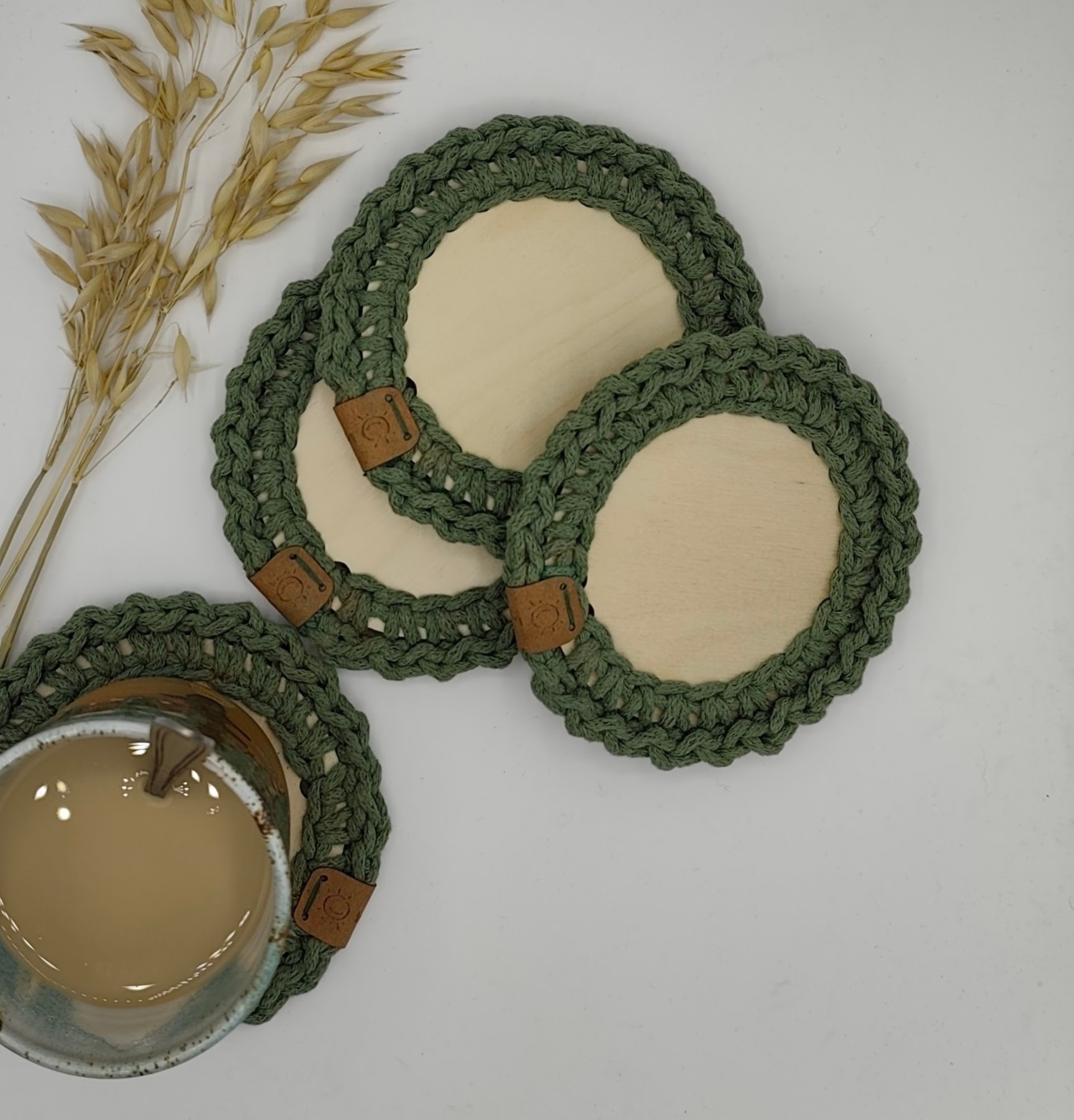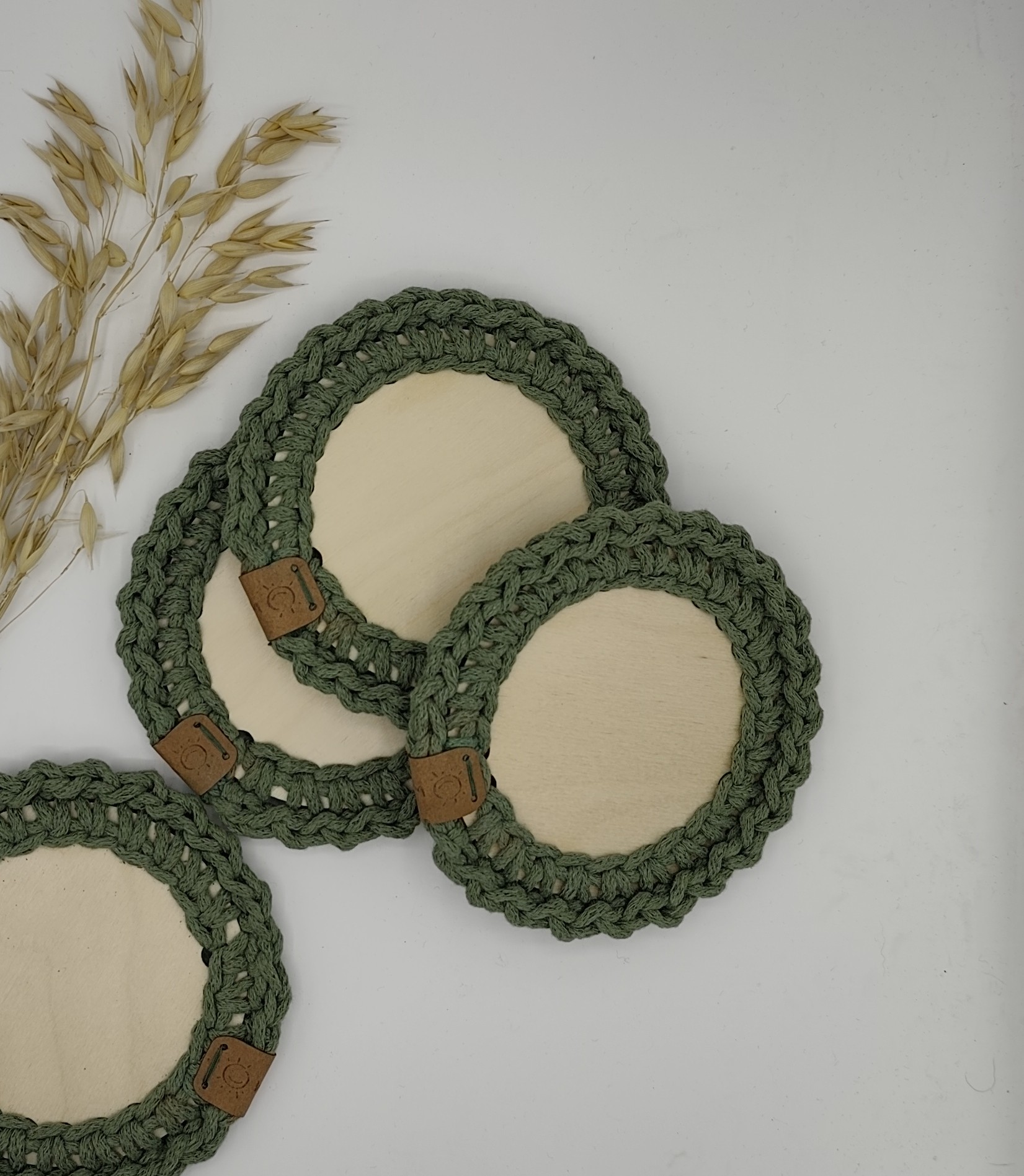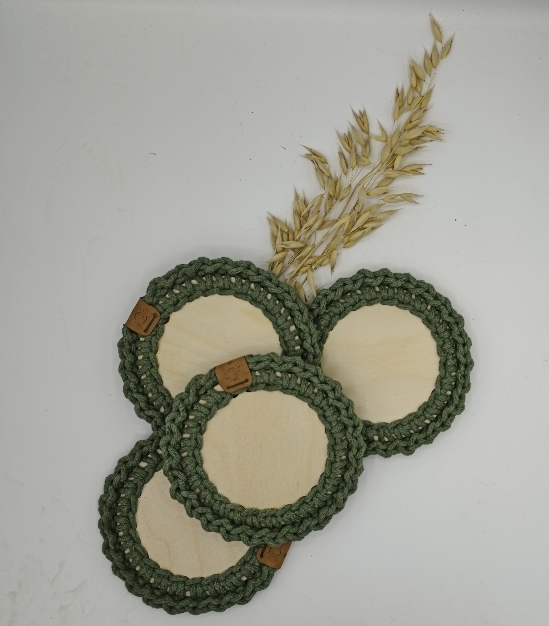Háčkovaný podtácek zelený (šalvěj) spojuje přírodní dřevo s jemným háčkovaným lemem. Praktický doplněk na váš stůl, který ochrání povrch stolu a zároveň působí esteticky, zvláště, pokud máte více kusů. Cena je za jeden kus.