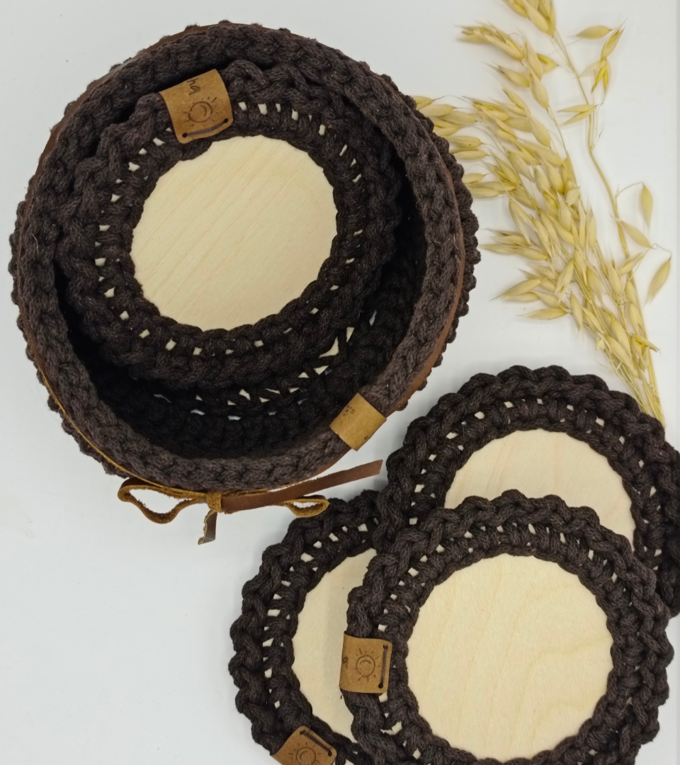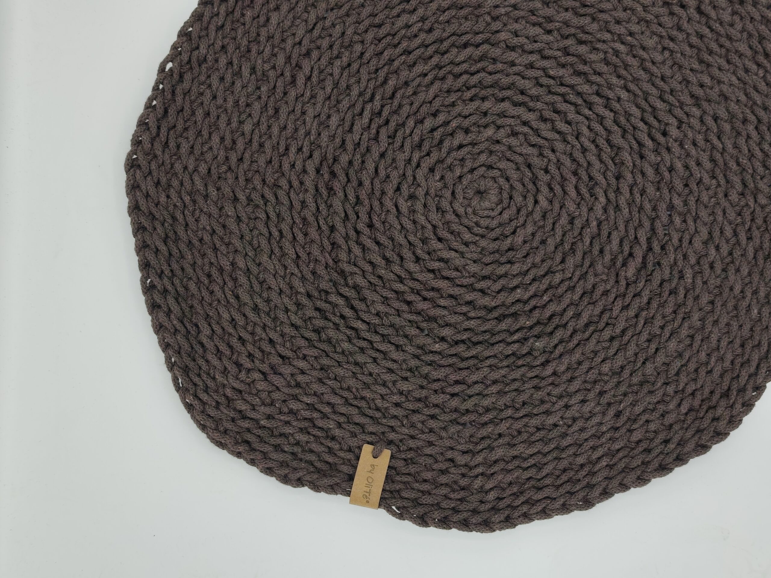Hnědé prostírání kulaté využijete jako vkusný doplněk vašeho interiéru na jídelní stůl nebo pod dekorace. Prostírání je ručně háčkované z velmi kvalitních pevných šňůr. Vyniká svoji strukturou a originalitou.