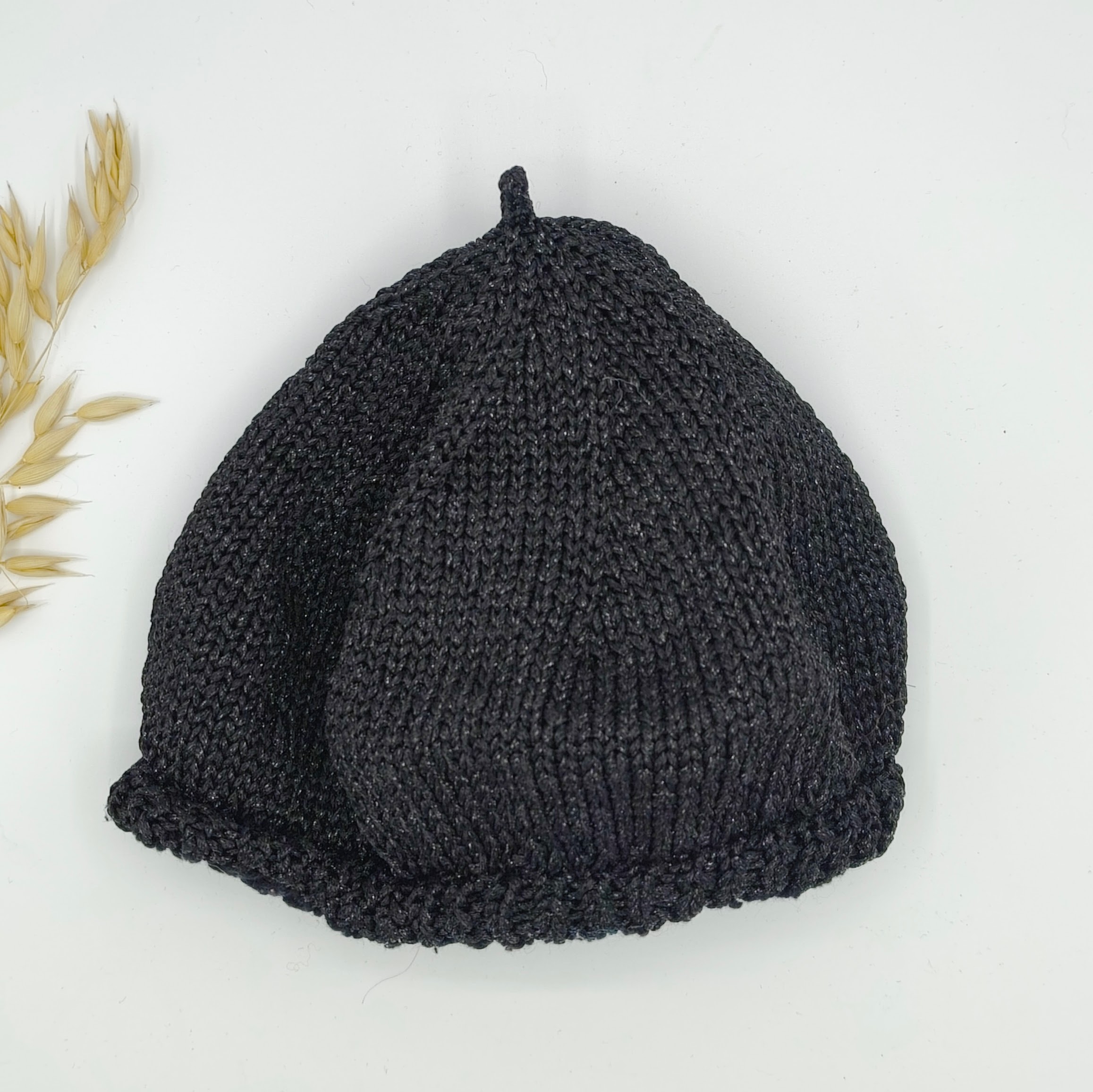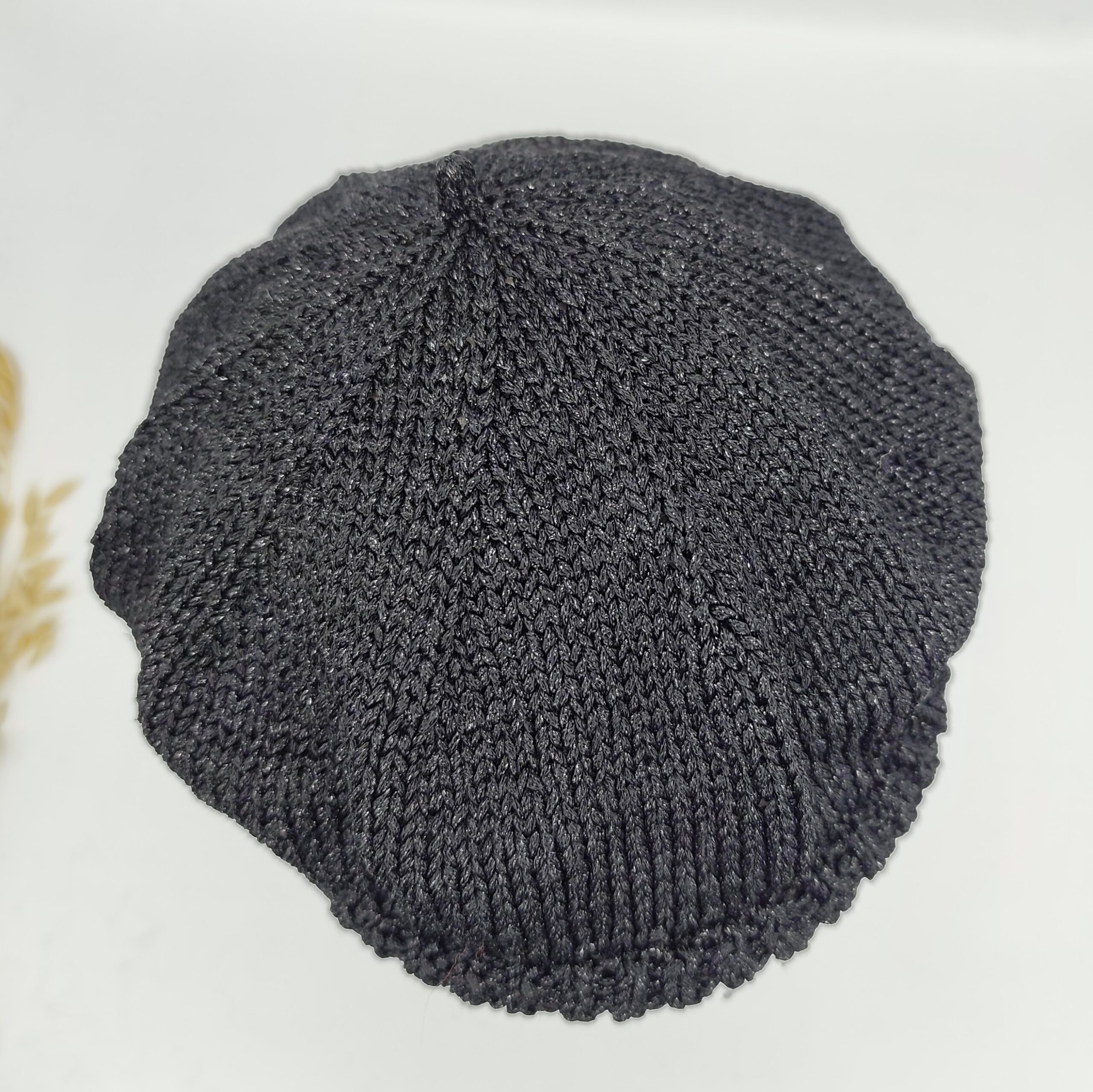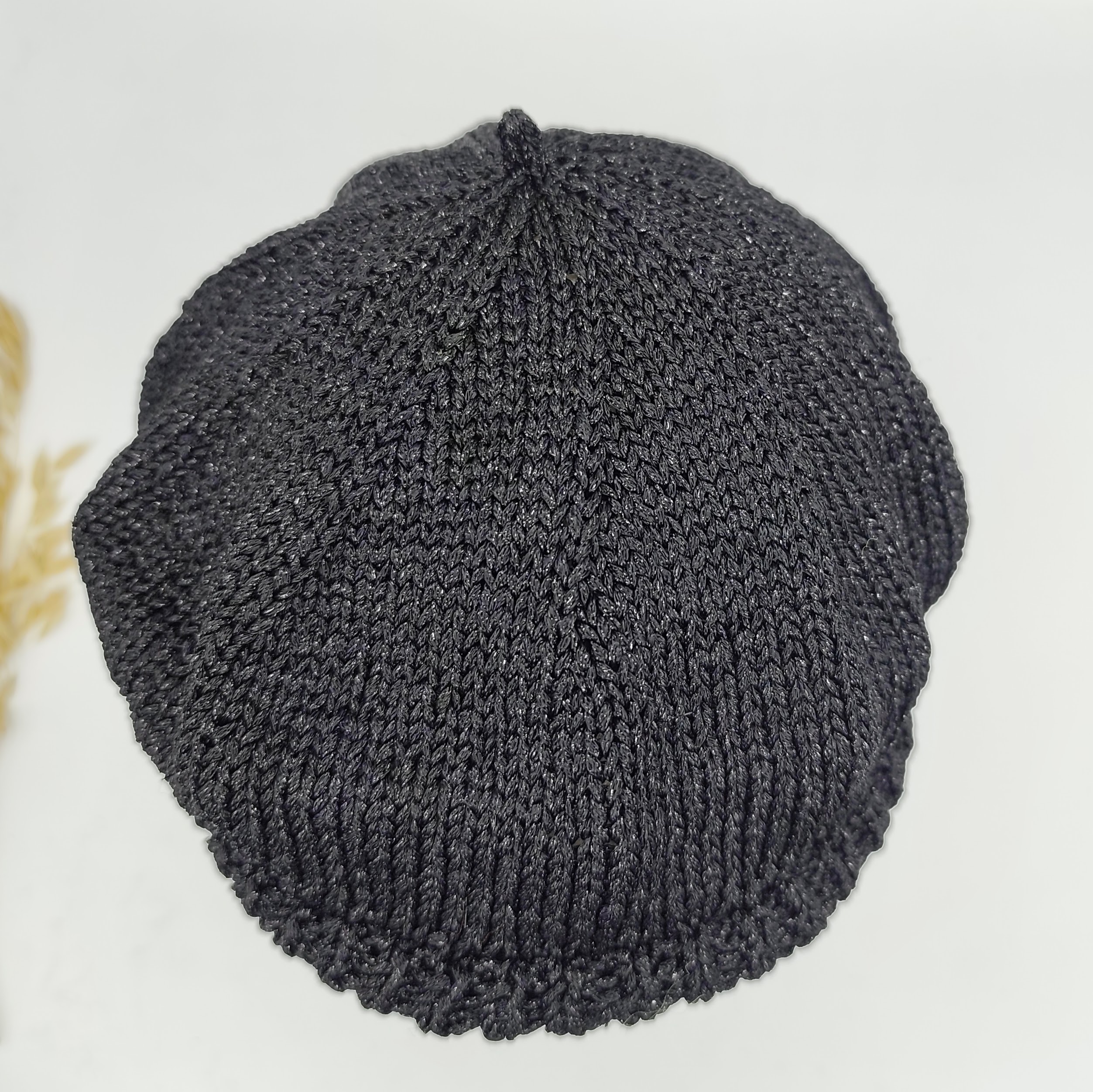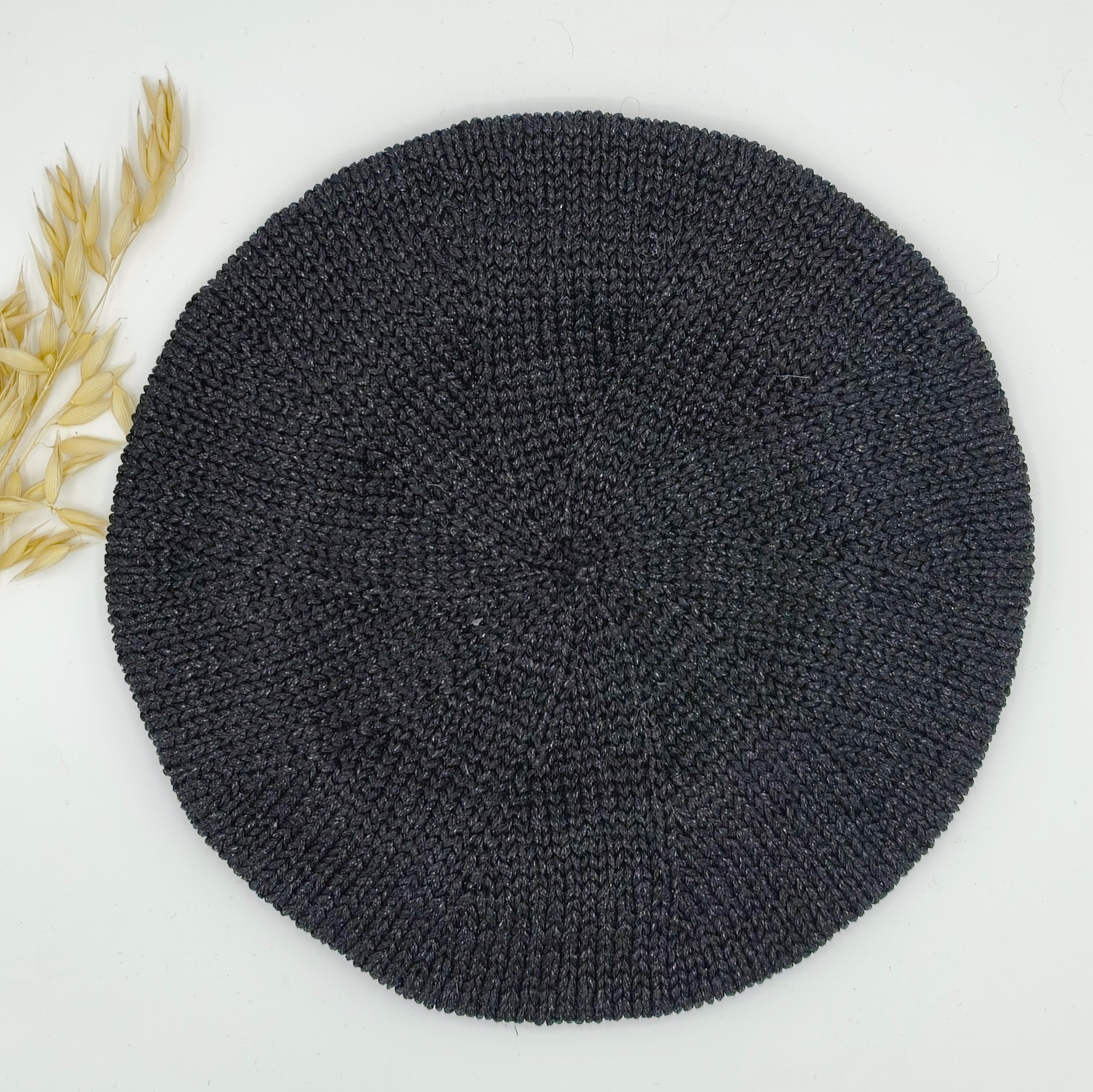Společenský černý baret s blýskavou metalickou nití, díky které je i pevnější. Je míněn jako společenský, ale je jen na vás, kdy a s čím jej budete nosit. Při výrobě mě napadlo udělat mu menší talíř, aby se lépe nosil vzadu na hlavě, tzv. temeno – týl. Inspirujte se článkem Jak nosit baret. A samozřejmě mu nechybí ani anténka. Baret, to je klenot šatníku.
