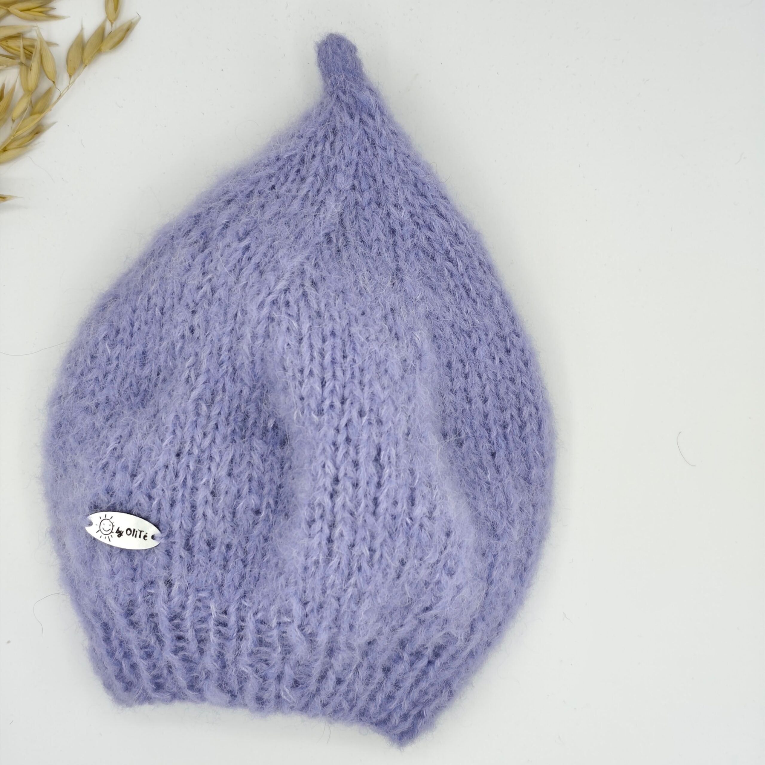 Vlněný baret s hedvábím lila. Je lehoučký, jemný a díky lamí vlně neskutečně hřejivý, Díky hedvábí se leskne. Můžete jej nosit s čímkoliv vás jen napadne. Je vyroben tak, aby jste jej mohla nosit na všechny způsoby, které jsem uvedla v tomhle článku. A samozřejmě nechybí ani anténka. Baret, to je klenot šatníku.