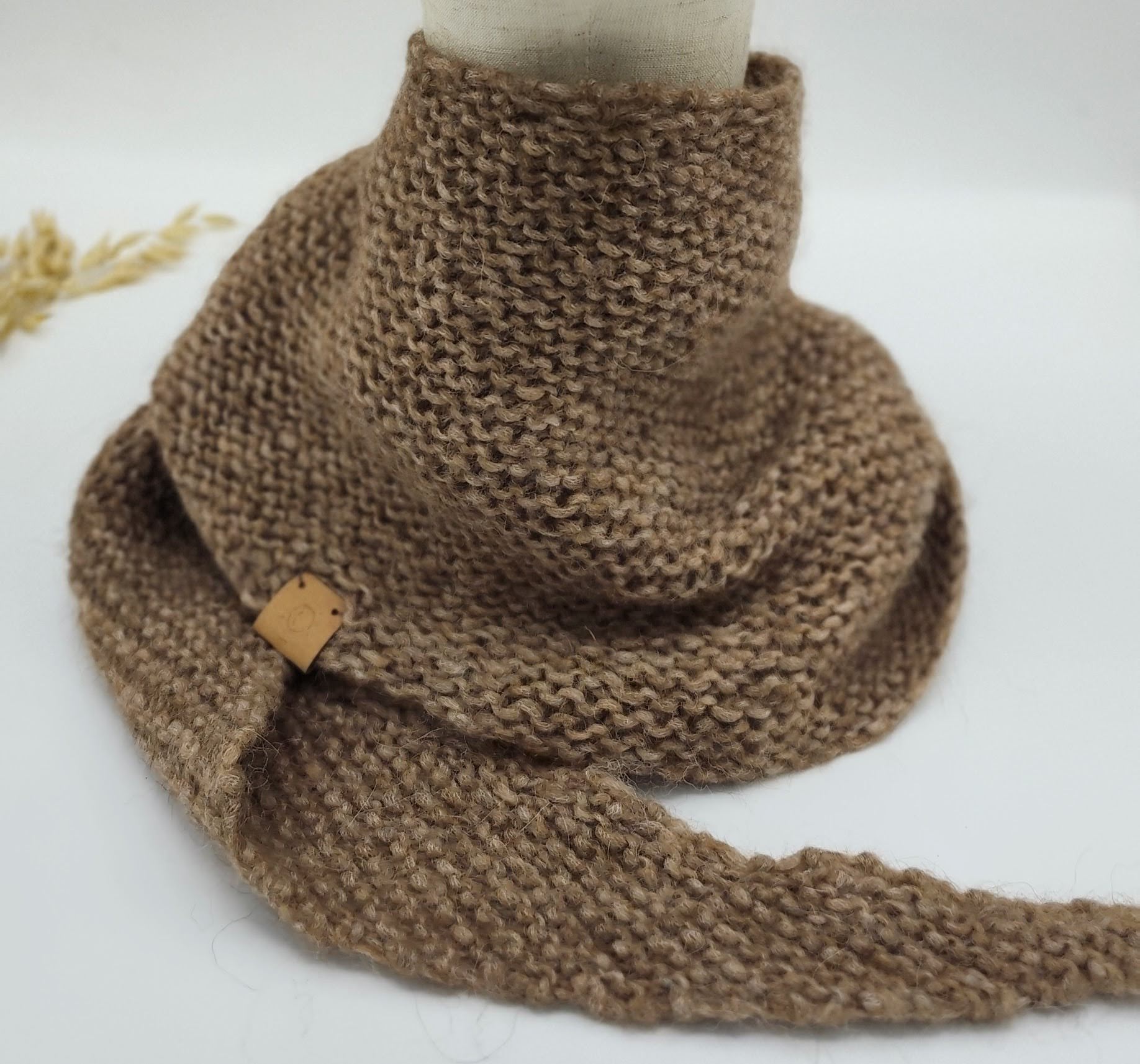 Vlněný šáteček na krk v tmavě béžové barvě.