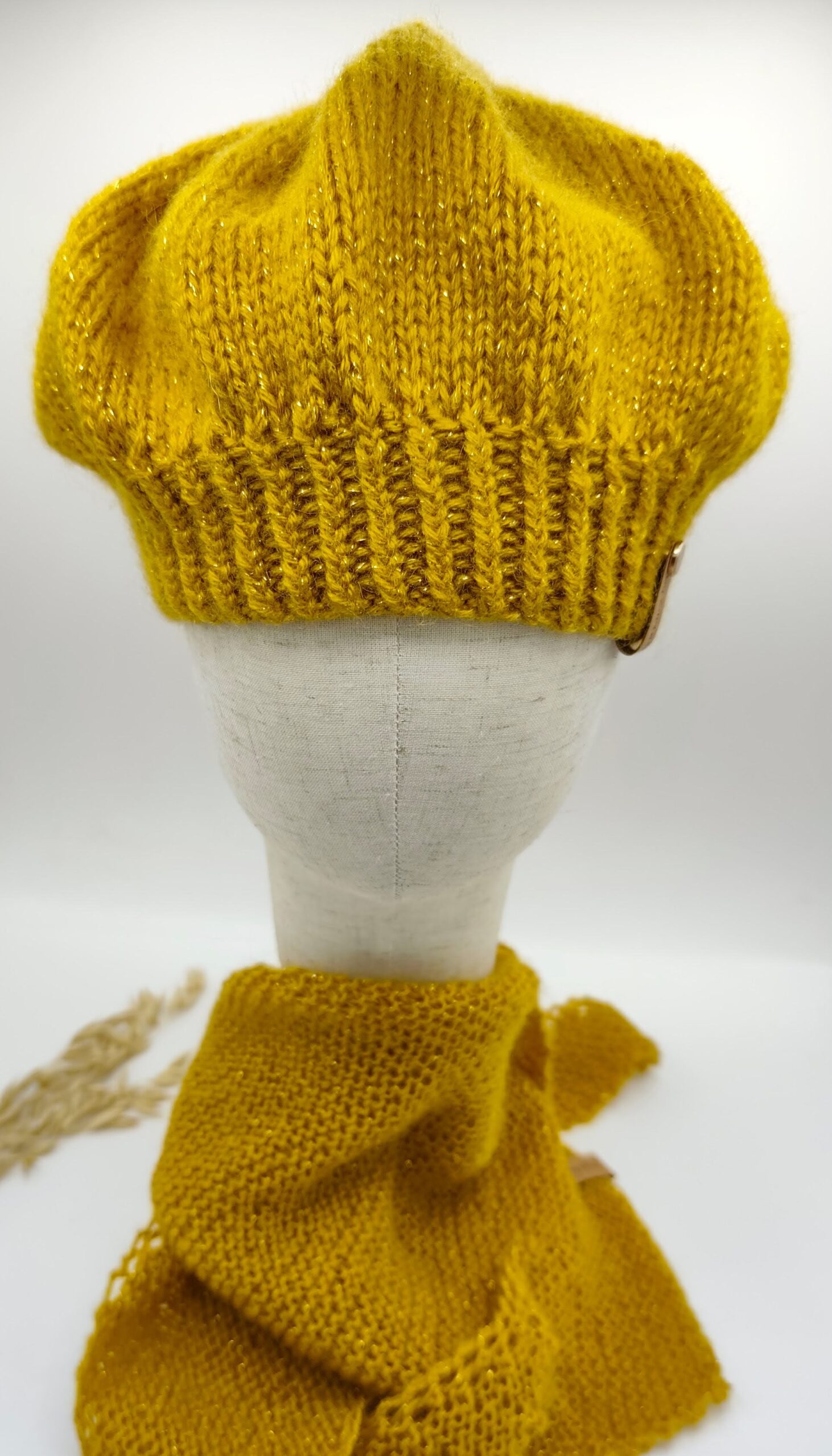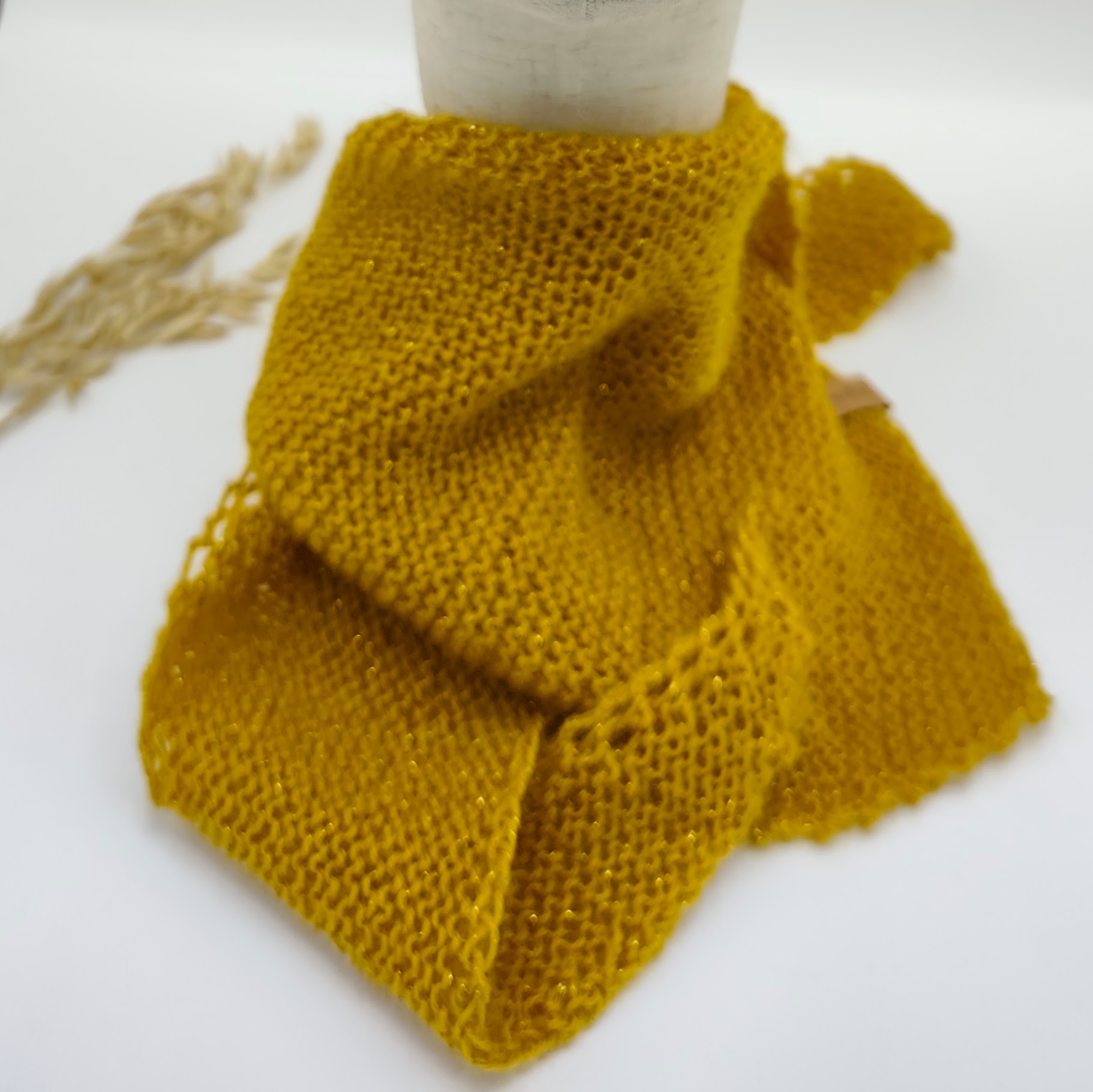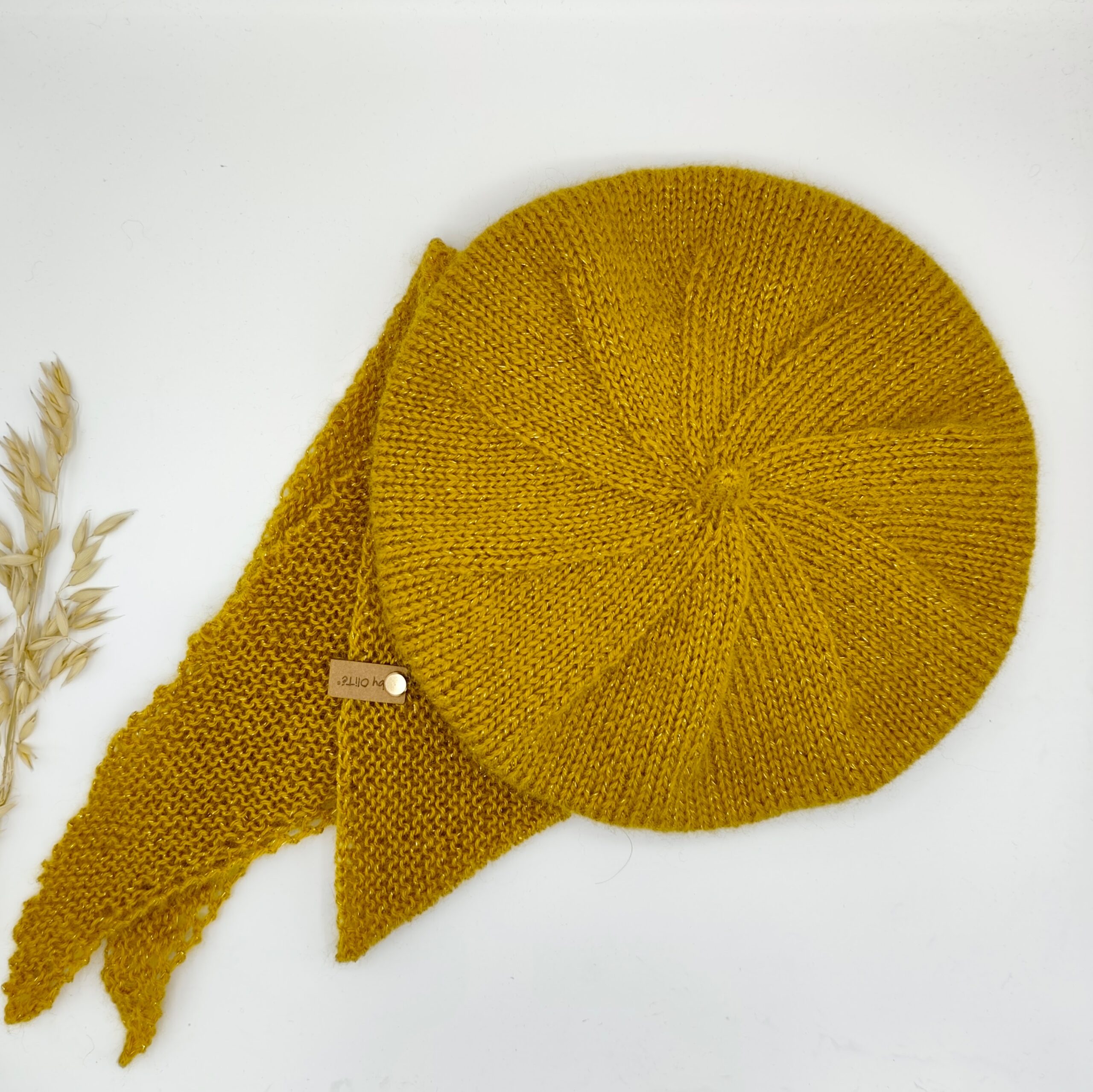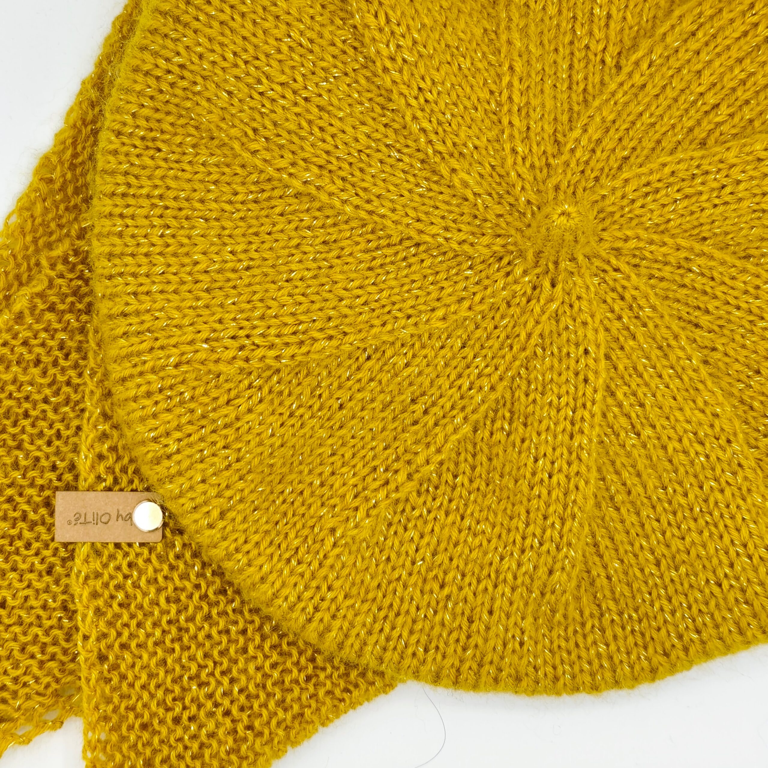 Vlněný pletený šátek hořčicová sluší všem podzimním typům. A pokud máte ráda barvy podzimu a k tomu i příjemný materiál, budete tuhle pletenou radost milovat. Šátek je akorát tak velký na uvázání kolem krku a díky zlaté metalické nitce se nádherně blýská. Perfektní volba do kabátu. Spolu s tímhle baretem budete nepřehlédnutelná.